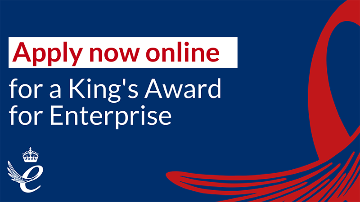 Find out more and apply for the King's Award for Enterprise.
